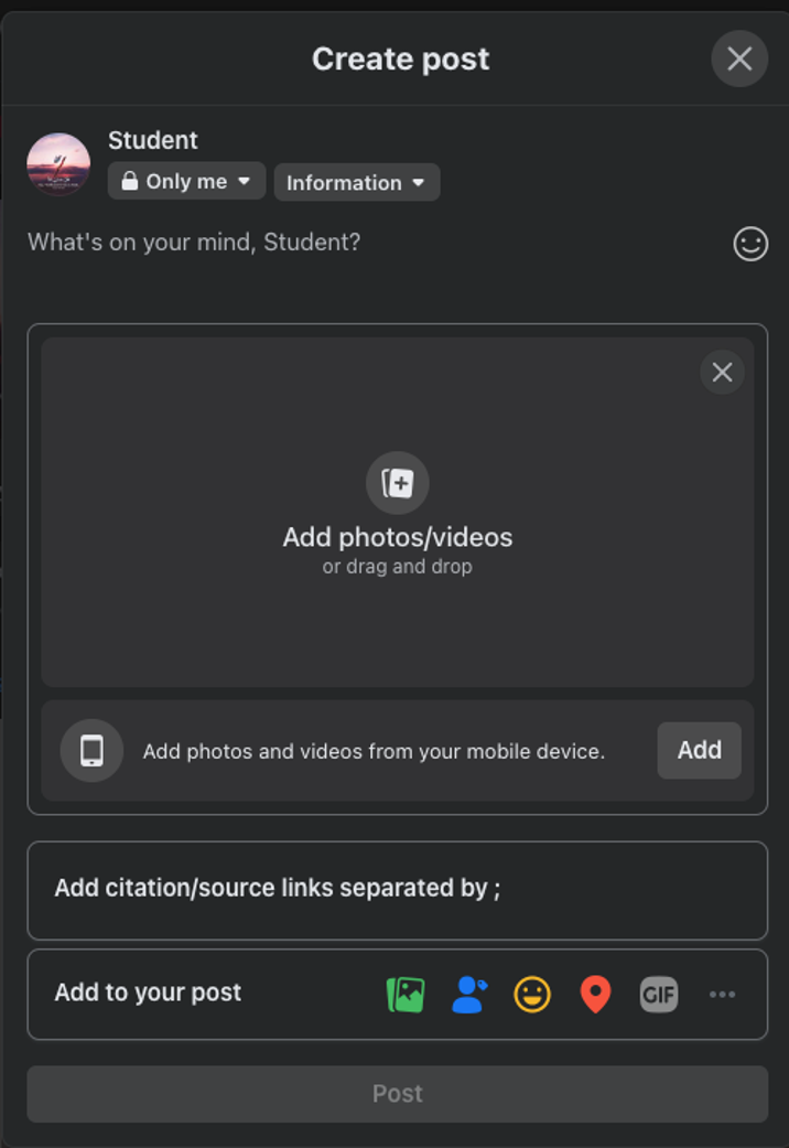 When users select the Information category for uploading their content—whether audio, video, or text—they should be required to provide relevant citation/source links to authenticate the content. This step is essential for ensuring that the shared information is reliable, accurate, and verifiable.